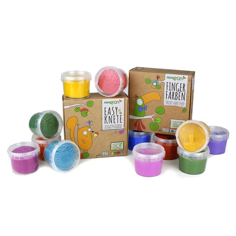 La pâte à modeler, la peinture aux doigts et les craies Neogrün sont fabriqués à partir d'ingrédients naturels et sont certifiés vegan.